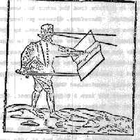 Other some, holding their whole Arm bowed together, have carried it altogether flat against their body, not regarding either to ward their belly, or utterly to lose the sight of the enemy, but will at any hand stand (as they think) safe behind it, as behind a wall, not knowing what a manner of weight it is, both to see the enemy, and work other effects, which, (by so holding it) may not be brought to pass.
